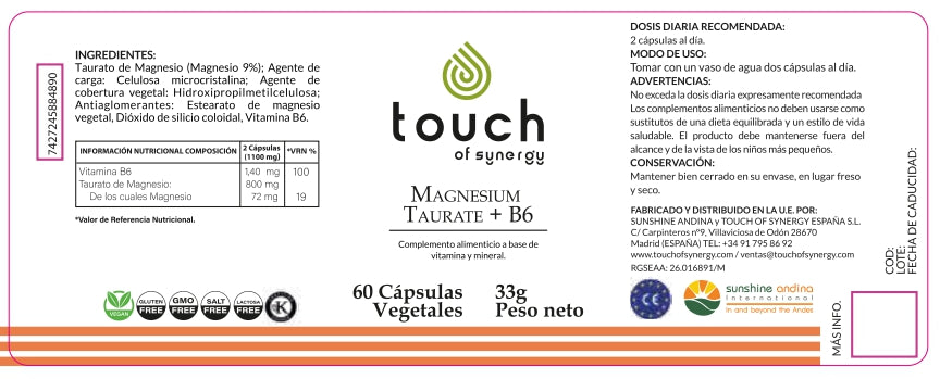 Magnesium Taurate+ B6 ( 60 cápsulas). Mejora la calidad del sueño y las funciones cerebrales.