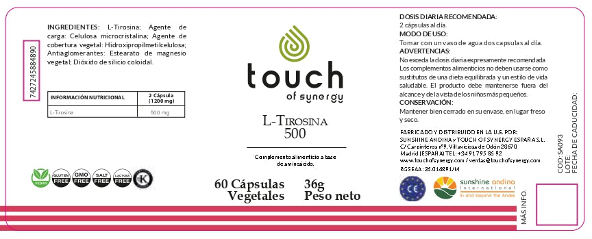 L-Tirosina 500. 60 cáps. Previene el hipotiroidismo, mejora tu estado de ánimo.
