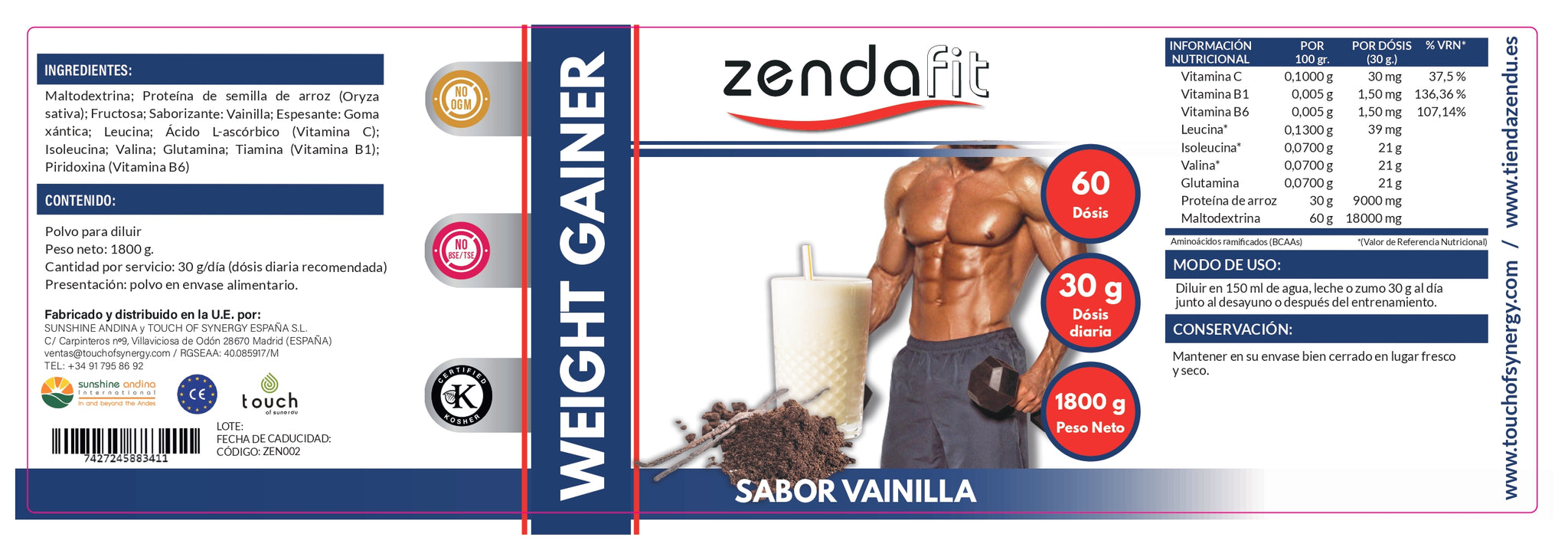 Weight Gainer (Ganador de Peso) Sabor Vainilla - 1800 gramos (15g de proteínas y 30g de carbohidratos por porción)