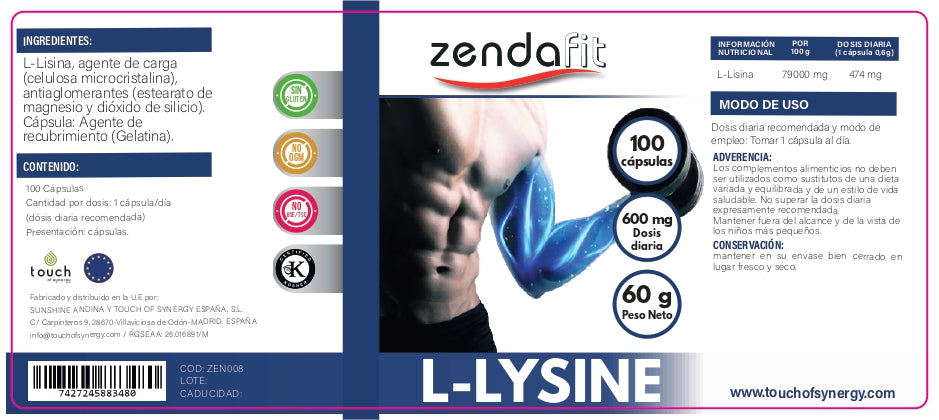 L-Lysine Zendafit. Esencial en la formación estructural del colágeno.